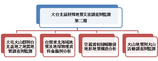 台灣與其北方的日本、南方的菲律賓及印尼等國家同處於太平洋與歐亞板塊交界的火環上,由於受到板塊間相互擠壓的作用,歷史上除了發生許多災害性地震外,亦曾有許多破壞性火山活動的記載,故此區域可看見過去火山活動所留下的遺跡,亦可觀察到目前存在的火山活動現象。 大台北地區北有大屯火山群,東側有火山活躍的龜山島與地震頻繁的東北部地震帶,且大台北地區為我國政治和經濟的重鎮,其都市發展與人口密度皆為全台之冠,面對地震與火山活動可能帶來之威脅,平時應有防震減災的準備,並詳細探討大台北與其鄰近地區潛在斷層與火山活動之特性。 有鑑於此,本所延續前期計畫,與相關學術研究單位共同合作執行「大台北地區特殊地質災害調查與監測第二期」計畫,包含「大屯火山群與台北盆地之地震地質調查與監測」、「火山地質與火山活動調查與監測」、「台灣東北海域地質及地球物理資料彙編與分析」、「空載雷射掃瞄數值地形地質構造分析」四個子計畫。